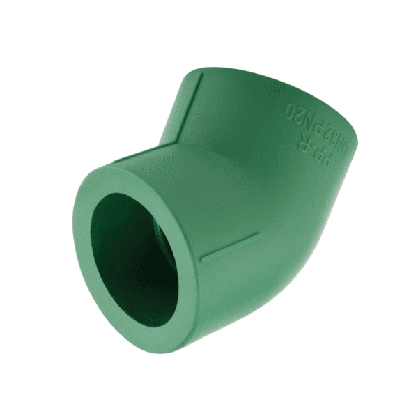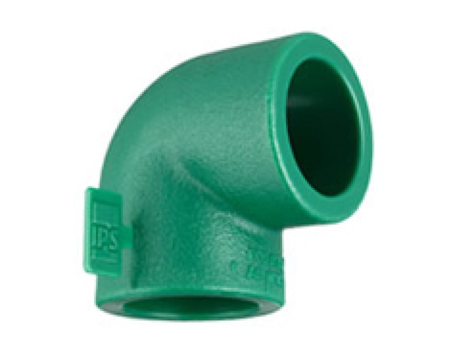 Codo de termofusión para instalaciones de agua fría y caliente en tubería de PP-R. Ideal para redes domiciliarias y comerciales.